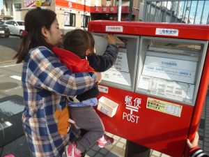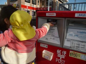 中にはポストの中にはがきを入れてもいいのか戸惑う子もいましたがお手伝いが出来たことが嬉しかったようで