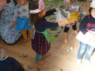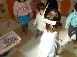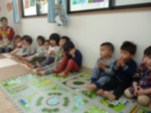 その後、豆まきをすると可愛い鬼のお面でしたが保育士が鬼を演じるとやはりちょっと怖がる子もいました😂