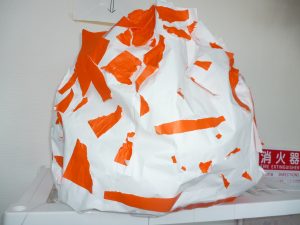 それを子どもたちがいない間にコッソリ張りぼてに仕上げ…小さな保育園なので隠すのが大変(笑)