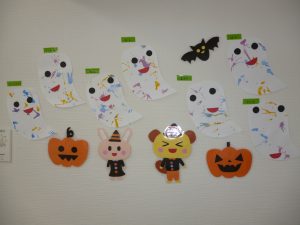 そして2歳児のみんなの作品、おばけの体の模様は「吹き絵」で表現されています👻