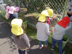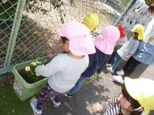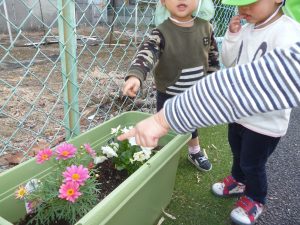 園庭のプランターにお花を植えました。