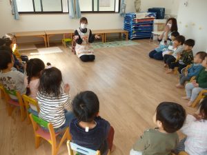 「あなたのおなまえは?」を歌いながら一人ひとりに名前を言ってもらいます。