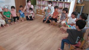 日差しが強くなり、汗ばむ季節になってきました。室内の温度・湿度をこまめに調節したり、戸外あそびの時には水分補給をして休息を取りながら遊んでいます。
