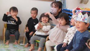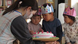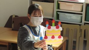 先日、延期されていた8月、9月生まれのお友達も一緒に、10月の誕生会が行われました!