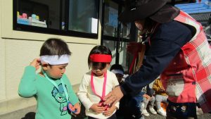 全ての種目が終わった後は、保育士からアンパンマンのメダルをかけてもらいました。