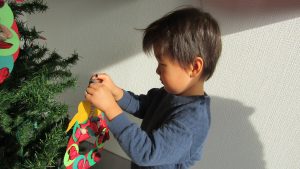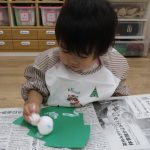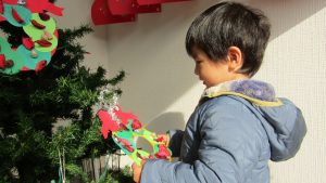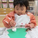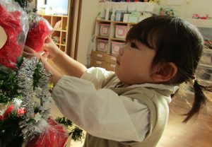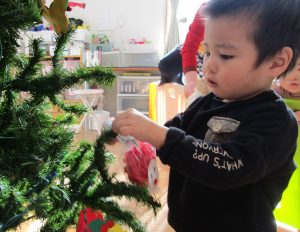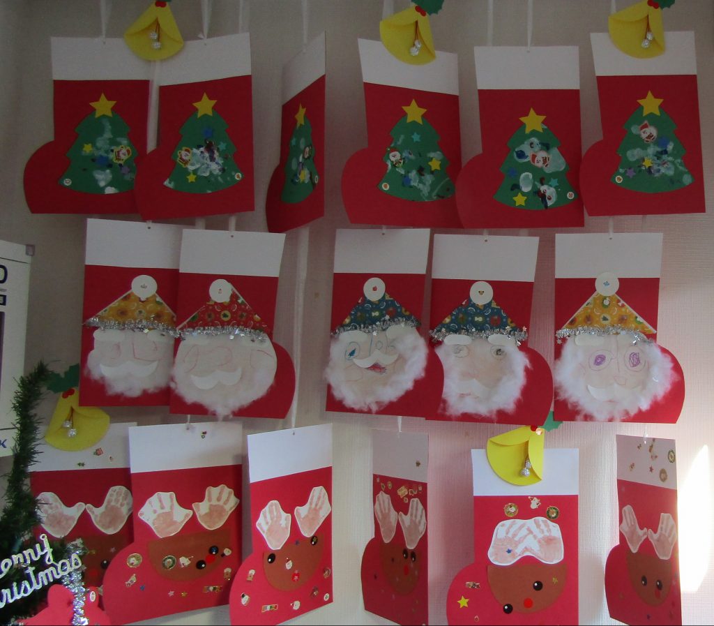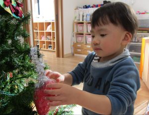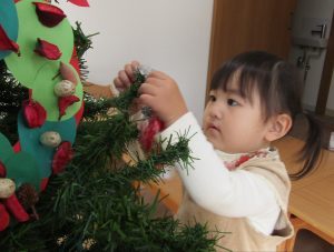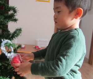 保育園では、クリスマスツリーに飾るオーナメント作らなくちゃ!サンタさんにプレゼントをもらうブーツも作らなくっちゃ!と、子ども達は、大忙しですよ♪