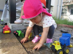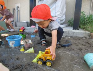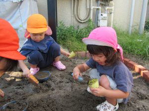9月26日(月)、1・2歳児の縦割り保育にて、〝どろんこあそび〟を行いました。