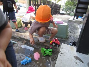 たくさん遊んだあと泥だらけの玩具は、みんなで綺麗に洗ってくれました♡『もう洗うものないかなぁ~』と探したりして、お片付けも楽しかったようですよ♪