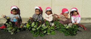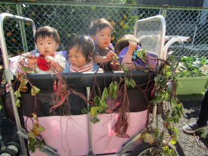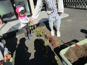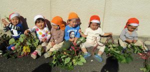 ふたば組さんも、たいよう組のお兄ちゃん達にお芋を持たせてもらったよ♪