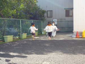 お友だちが競技している時は、手拍子に合わせて「がんばれ!がんばれ!」と自分たちから応援する姿があり驚かされました!また、どの競技も意欲的に取り組み、楽しんで参加することができました♪