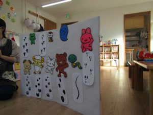 保育士の出しものは〝足跡みつけた〟のパネルシアターでした。