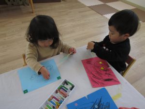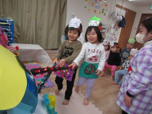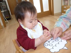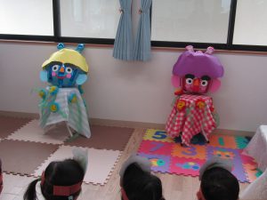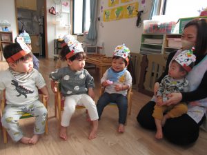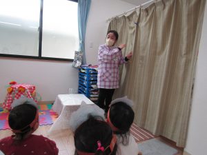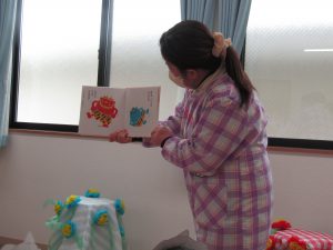 始めに〝おにのパンツ〟の歌絵本を見ました。みんな、手遊びをしながら、大きな声で歌ってくれましたよ♪