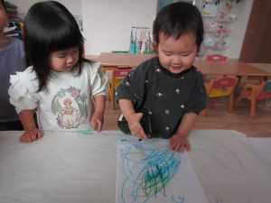 その前に~みんなで紙コップにシールを貼りましょう!
