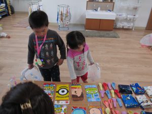 みんなそれぞれ、自分の好きなものを選ぶ楽しさを味わっていましたよ♪買ったものを見せ合い、とっても嬉しそうですね。