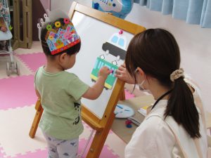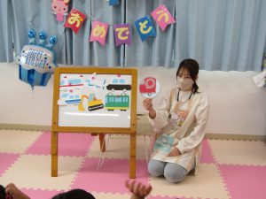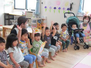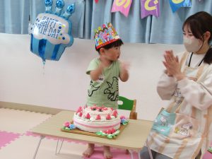 フィリオ便り 5月の誕生会 2023年5月27日 今日は5月のお誕生会です。 5月生まれのお友だち、とても清々しい季節に生まれたのですね。 Happy Birthday to you♪ 大きなケーキ!おいしそう! 今日はどんなことをして楽しませてくれるのかな? のりものクイズ どんな乗り物か?考えてみてね はーい! わかったよ! 今日は特別な日になりました。 お誕生日おめでとう!