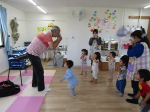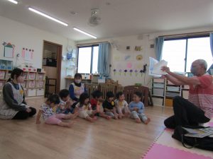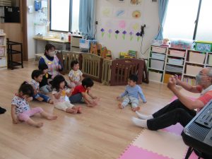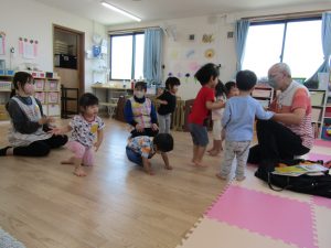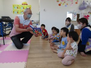 フィリオ便り 5月の英語音楽あそび 2023年5月29日 2歳児たいよう組の園児たちは、ウォーレン先生と一緒に楽しい時間を過ごしました。 今日はどんな歌を歌ってくれるのかな? どんなお話ししてくれるのかな? たいよう組の園児たちのかわいい目がキラキラしています。 みんな真剣なまなざしでウォーレン先生から目を離しません。 ウォーレン先生タッチ! おいしそうなお家だね ウォーレン先生、ステキな絵本を見せてくれてありがとう! また今度楽しみにしています!