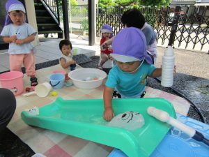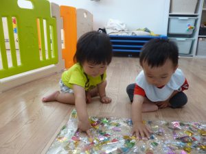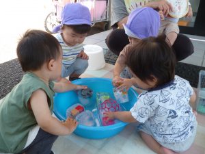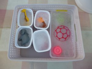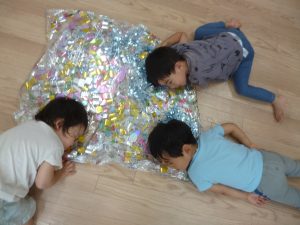 布団圧縮袋に水を入れて、モールやキラキラテープも一緒に入れました。