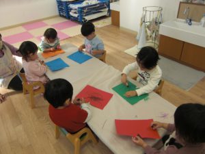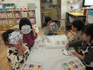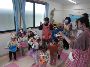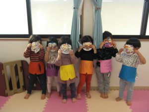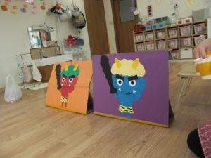 前から豆まきをするため、フィリオ清須の子ども達はいろいろな準備をしていました
