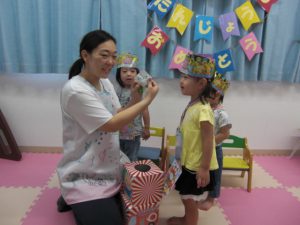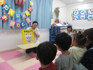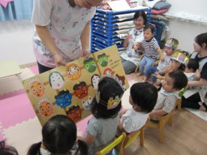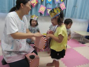 フィリオ便り お誕生会をしました(8月のお友だち) 2024年11月6日 8月の思い出、3人のお友だちの誕生会をしました。 みんなで仲良くケーキにロウソクを立てて… あれ!たおれちゃうよ~ 先生がそっとなおしてくれましたね。 つぎはくじ引き。 なにが出るかな? だっこ?おんぶ?どっちかな? 先生の出し物は大人気!「おめんです」の大型絵本でした。 どれにする? わたしこれ~♪ 今月も楽しかったですね。 次は10月のお誕生会をアップしますね。