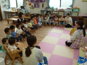 フィリオ便り 初めての英語音楽あそび〈2歳児・たいようぐみ〉 今年度初の〝英語音楽あそび〟がありました。 一番大きくなったたいよう組さんは、この日をとても楽しみにしていましたよ。 ウォーレン先生が来園さ...