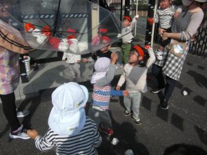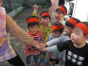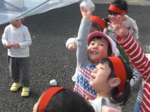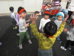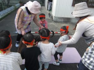 その様子を見ながら登園してきた子ども達は「今日うんどうかい?」と話し、
