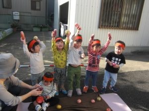 リスに変身してどんぐりを運ぶ子ども達、とっても可愛いですね。