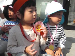一人ひとりにメダルをかけて、今年の運動会はこれでおしまいです。