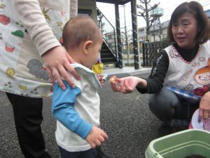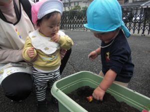 フィリオ便り プランターに球根や苗を植えたよ! 2024年12月10日 0歳児、1歳児、2歳児のみんなが集まって プランターにチューリップの球根やお花の苗を植えました。 もっと掘るの? こっちも植えようか? ここにも植えるようかな? 0歳児さんも近くで見たり…小さな手で触ったり… それぞれ楽しんでいますね! どんぐりみたいだね♪ たまねぎみたいだよ♪ チューリップ、パンジー、スノーポール… みんなでお水をあげながら大切に育てましょうね。