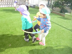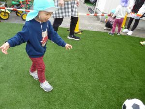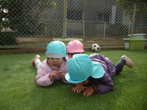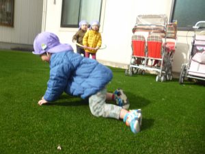 フィリオ便り 園庭がきれいなグリーンになりました 2024年12月27日 グレーのアスファルトの園庭が こんなにきれいなグリーンの園庭に変わりました。 寝ころんでみたり… ウキウキして踊ってみたり… ちょっと転んでみたり… いたくないね~ 芝をかき分けて感触を楽しむ子もいます。 サッカーも電車ごっこも、いつも以上に楽しそうな子どもたち。 これからの園庭あそびが、ますます楽しくなりそうです。