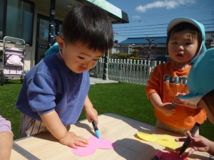 あたたかいね~!お外でちょうちょ つくろうよ!