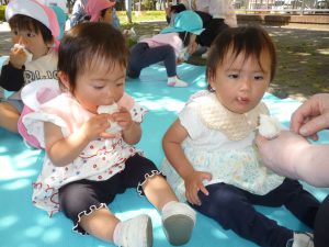 フィリオ便り 春の遠足☆ 2025年5月12日 みんなで春の遠足に行ってきました♪ 天候にも恵まれ、絶好の遠足日和! 先生の作ったおにぎりを持って行って公園で食べましたよ~! おいし~い! おやつを食べた後は、池を泳いでいるカメさんを眺めたり、 遊具やお砂場で遊んだりして楽しい時間を過ごしました♪ 先生が作ってくれたおにぎり美味しかったね たくさん遊べてよかったね
