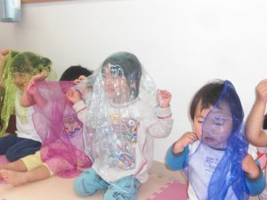 美しい色彩のオーガンジーのスカーフを使って子どもたちの五感が大忙し!