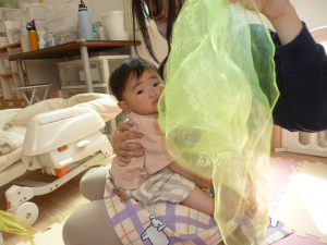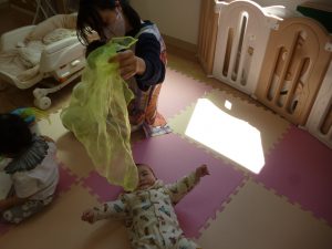スカーフの感触を楽しんだり、”いないいないばぁ”をしたりして遊びました♪