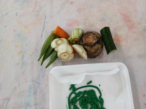 2歳児は「ピザ」、1歳児は「わたしのワンピース」をつくります。