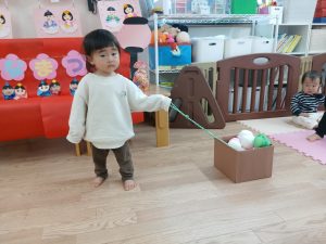 紐を一生懸命引っ張って、ひなあられを運んでくれましたよ✨
