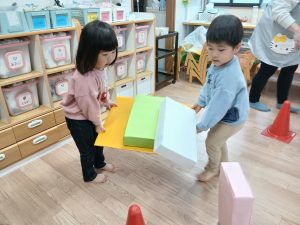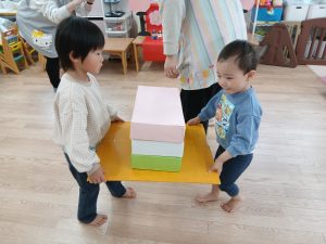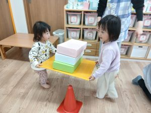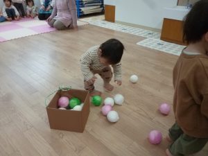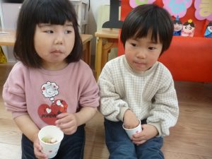 ふたば組さんは、ひなあられ運びゲームに挑戦です!